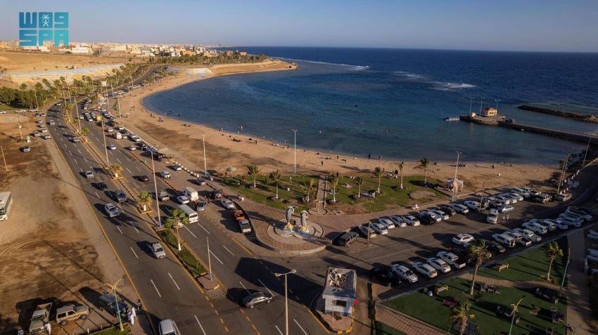 هو واحد من أهم الشواطئ وأبرزها بمنطقة تبوك؛ الواقع شمال مدينة الوجه، الذي يمتاز بشكله المميز على خليج نصف دائرة، تقل فيه الأمواج، وتم تجهيزه بوحدات من المظلات ومقاعد للجلوس وألعاب للأطفال، وزراعته بالنخيل والأشجار.